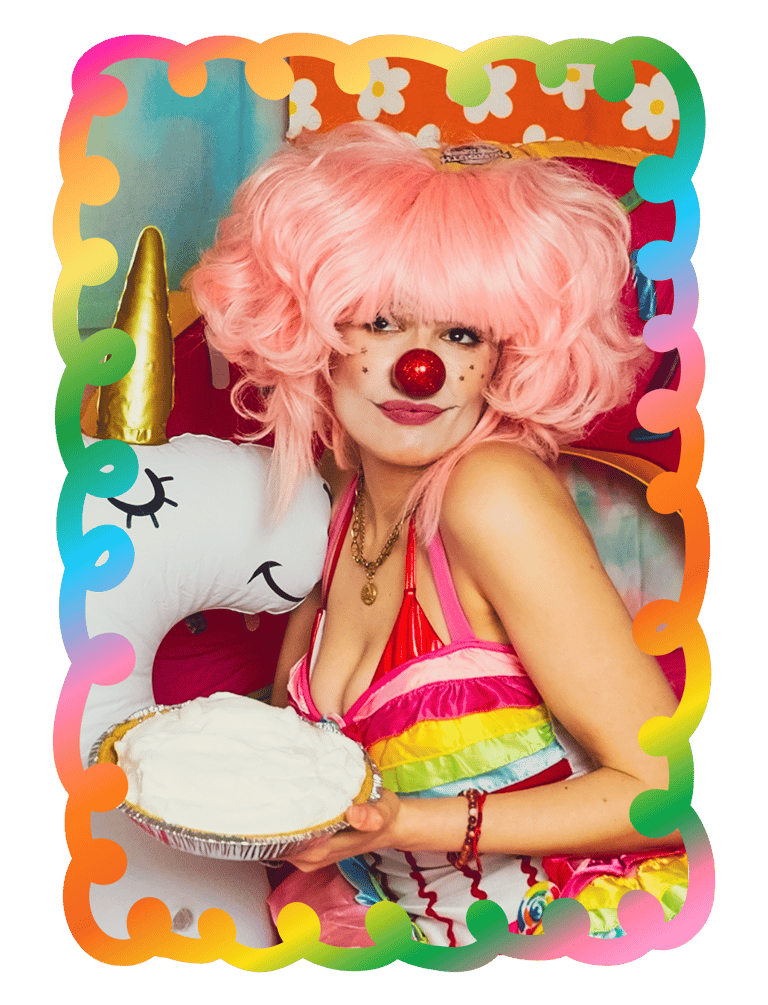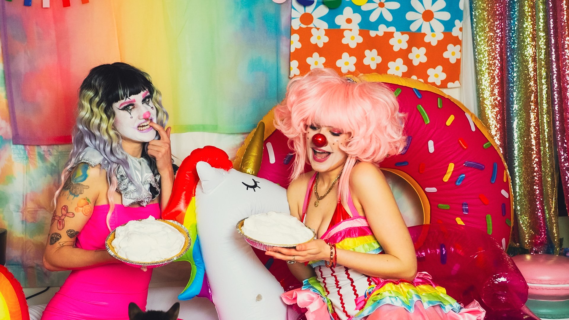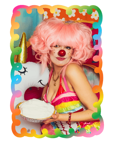 Get pied in the face by clown girls.
